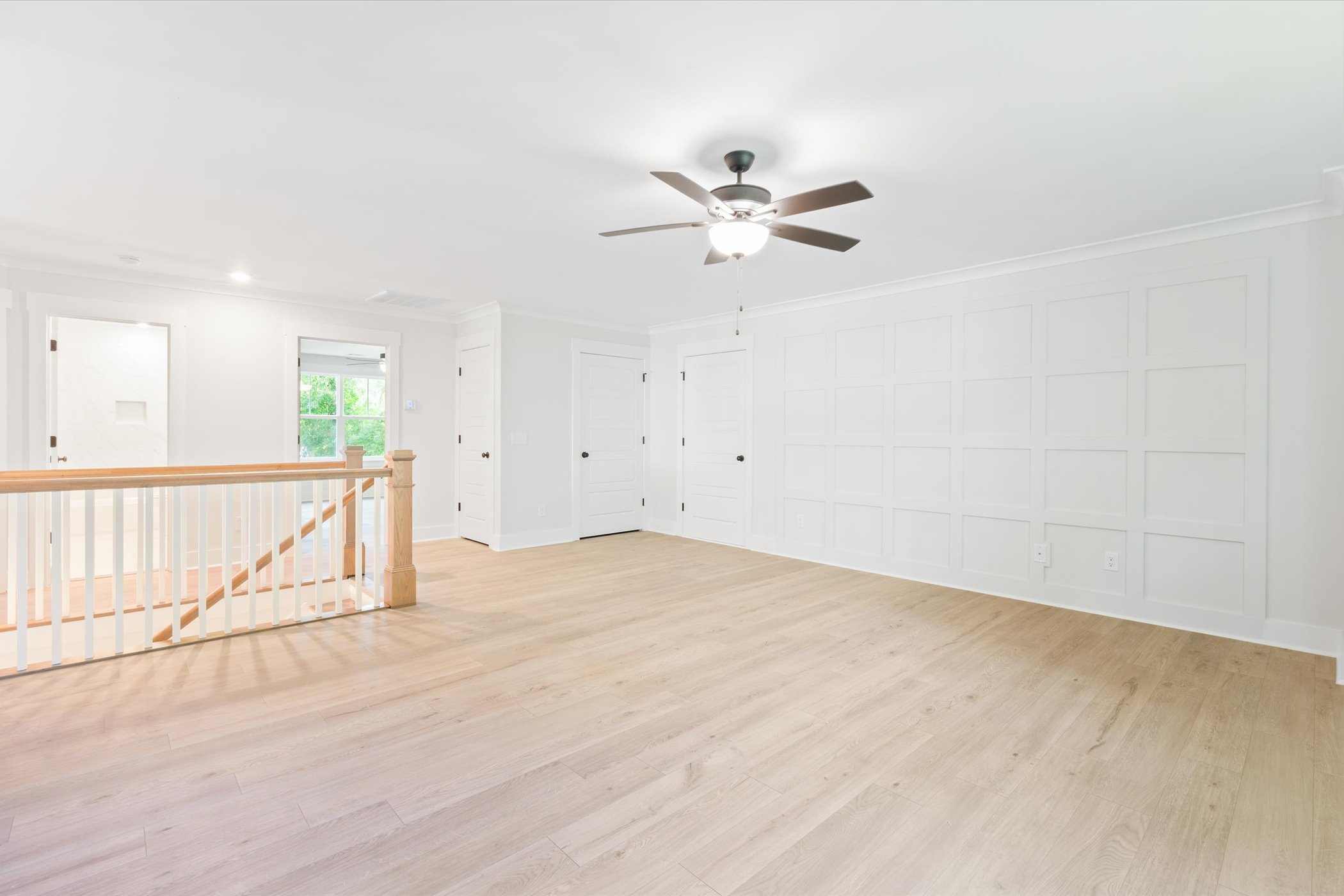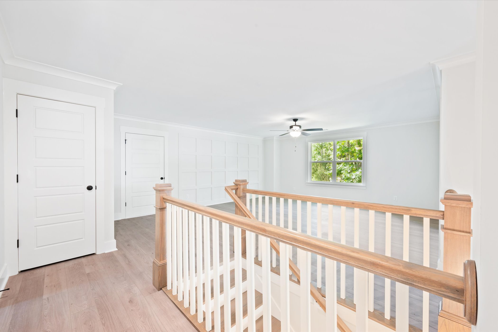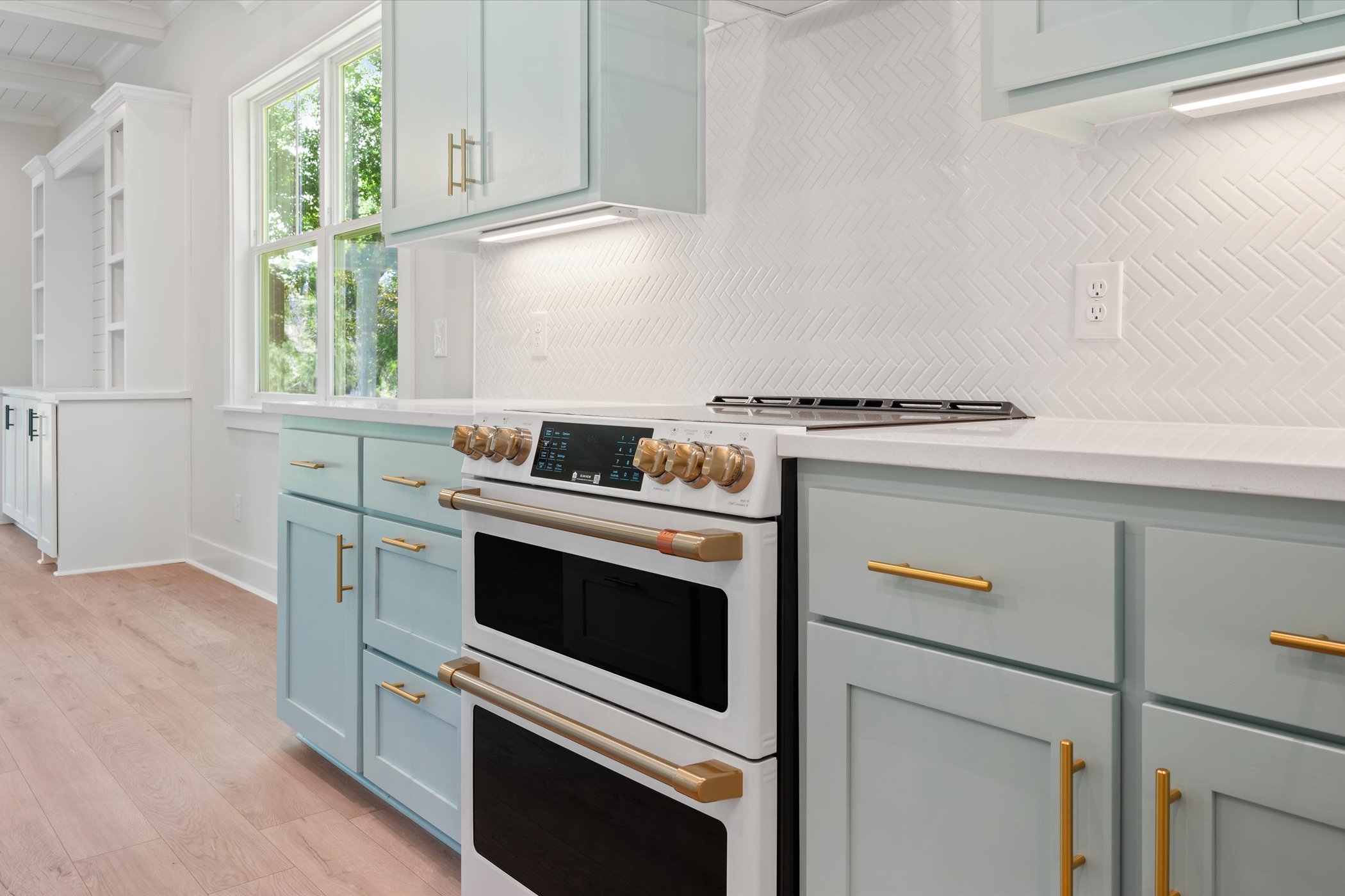 Well-appointed kitchen with real wood cabinetry, tile backsplash, and gorgeous Cafe series appliances, slide-in stove with second pizza oven, dishwasher, and space-saver microwave. Coffered ceiling in the great room, upgraded flooring, beautiful staircase banister with wood treads, great lighting package, huge loft area, private laundry room, covered back porch overlooking the marsh, and more! Main level primary suite with three bedrooms and a loft upstairs.
